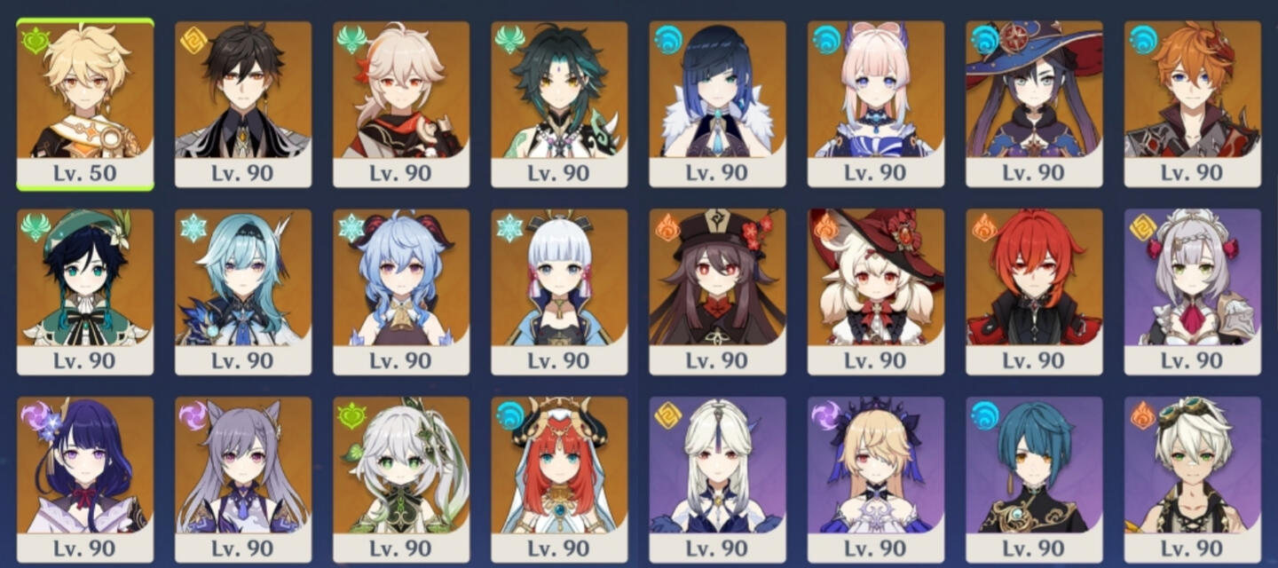 | Diluc, Lyney, Zhong-li, Al-haitham, Kaveh, Baizhu, Neuvillette, Childe, Ayato, Wriothesley, Thoma, Baizhu, Itto, Albedo, Cyno, Freminet. |